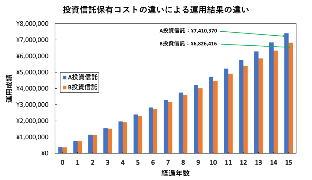 つまり、コツコツ投資しても、保有コストが高いと最終的な成果に大きな差が出るということです。