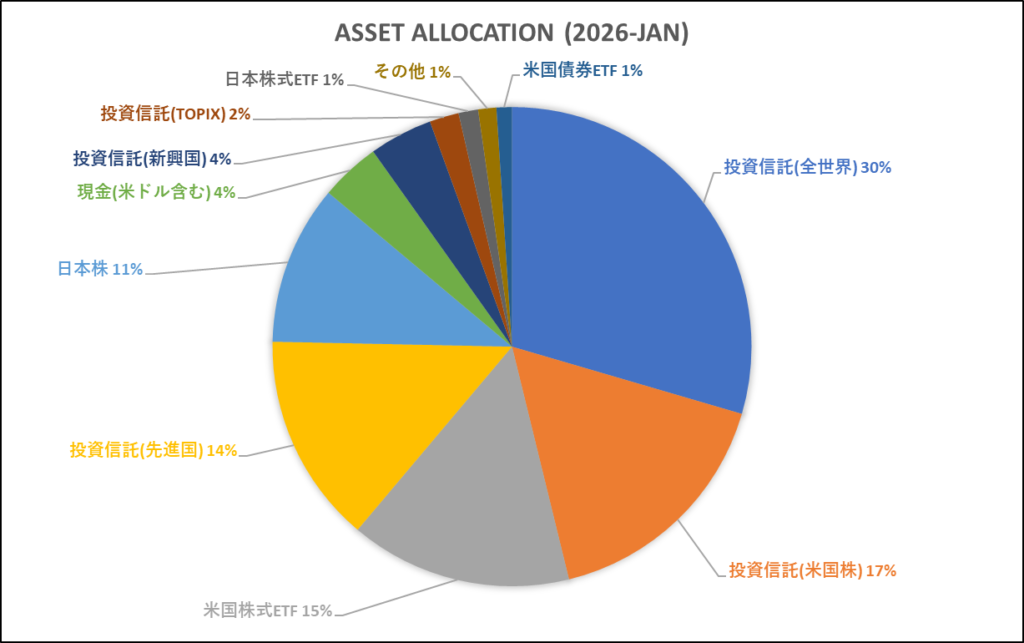 恒例の月末投資レポートです。今回は、2026年1月末時点の資産状況と投資の振り返りをまとめました。